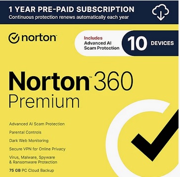 Norton 360 anti-virus software for 10 devices